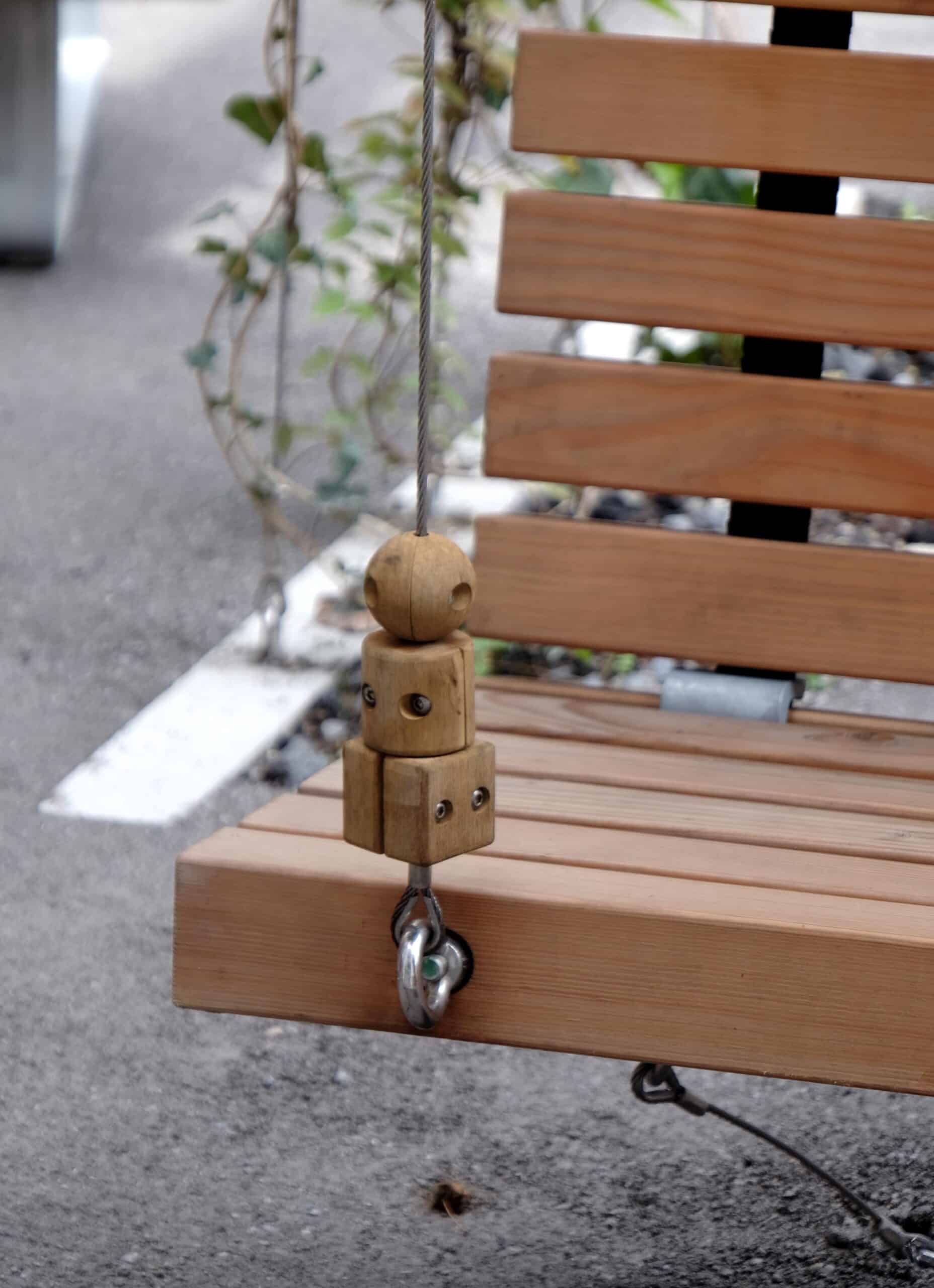 Der Hängesessel kann mit den Füssen leicht seitlich bewegt werden. Diese einfache Bewegung unterstützt Eigenregulation, erlaubt flexible Blickrichtungen und reduziert Fixierung. Die am Seil befestigten Holzkugeln laden zum Tasten, Bewegen und Spielen ein. Körperliche Aktivität, taktile Reize und visuelle Übersicht greifen ineinander. Für Personen mit erhöhter sensorischer Wahrnehmung oder Aufmerksamkeitsdynamik können solche Angebote regulierend wirken, ohne explizit darauf ausgelegt zu sein.