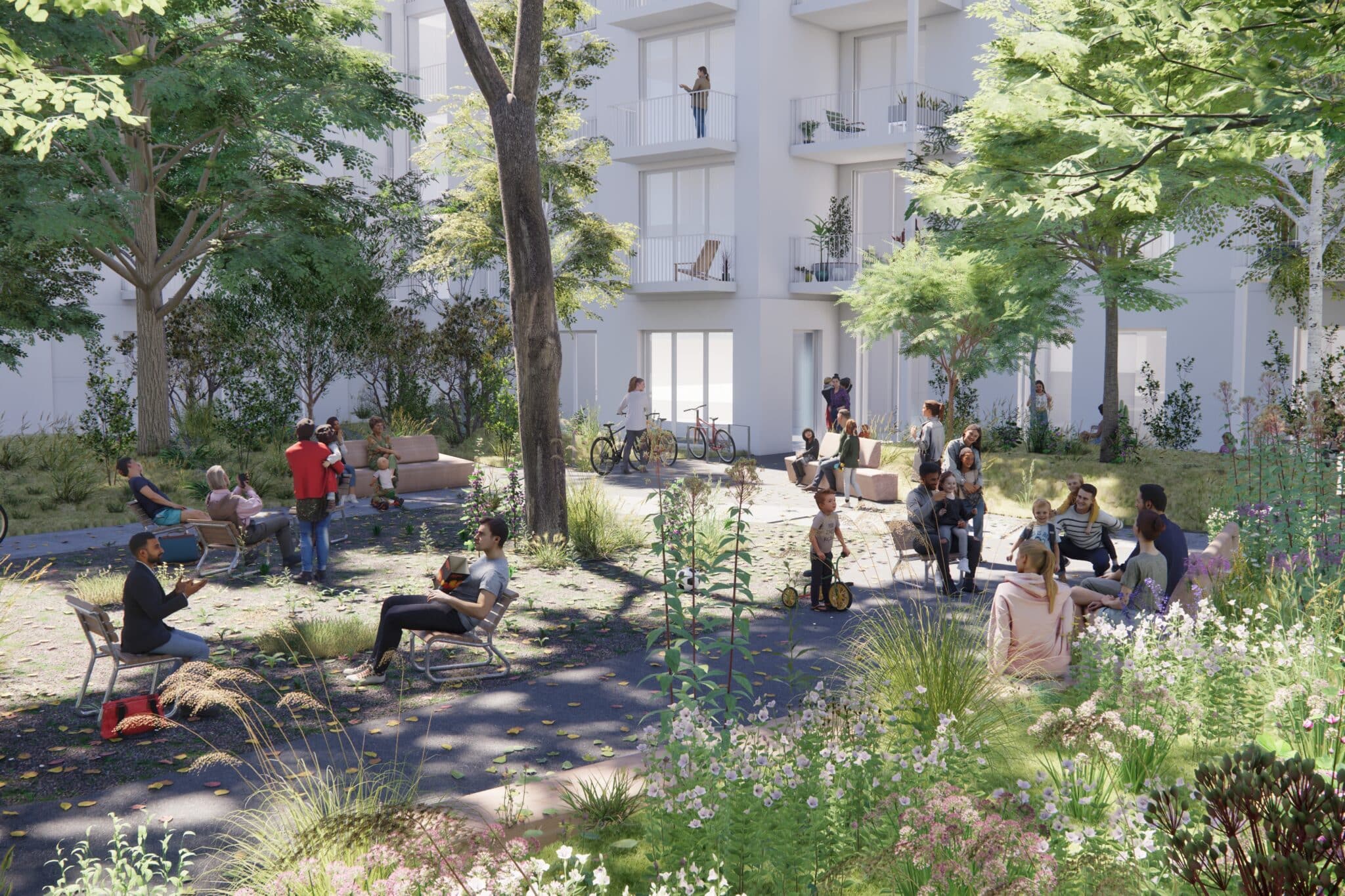 Im Wohnprojekt Lymhof in Schlieren wurden für die gemeinschaftlich genutzten Aussenräume in den Innenhöfen robuste, grossformatige Holzmöbel entwickelt. Die Möblierung ist Teil eines übergeordneten Freiraumkonzepts, das unterschiedliche Höfe, Übergangsbereiche und Nachbarschaftszonen miteinander verbindet und vielfältige Nutzungen ermöglicht.