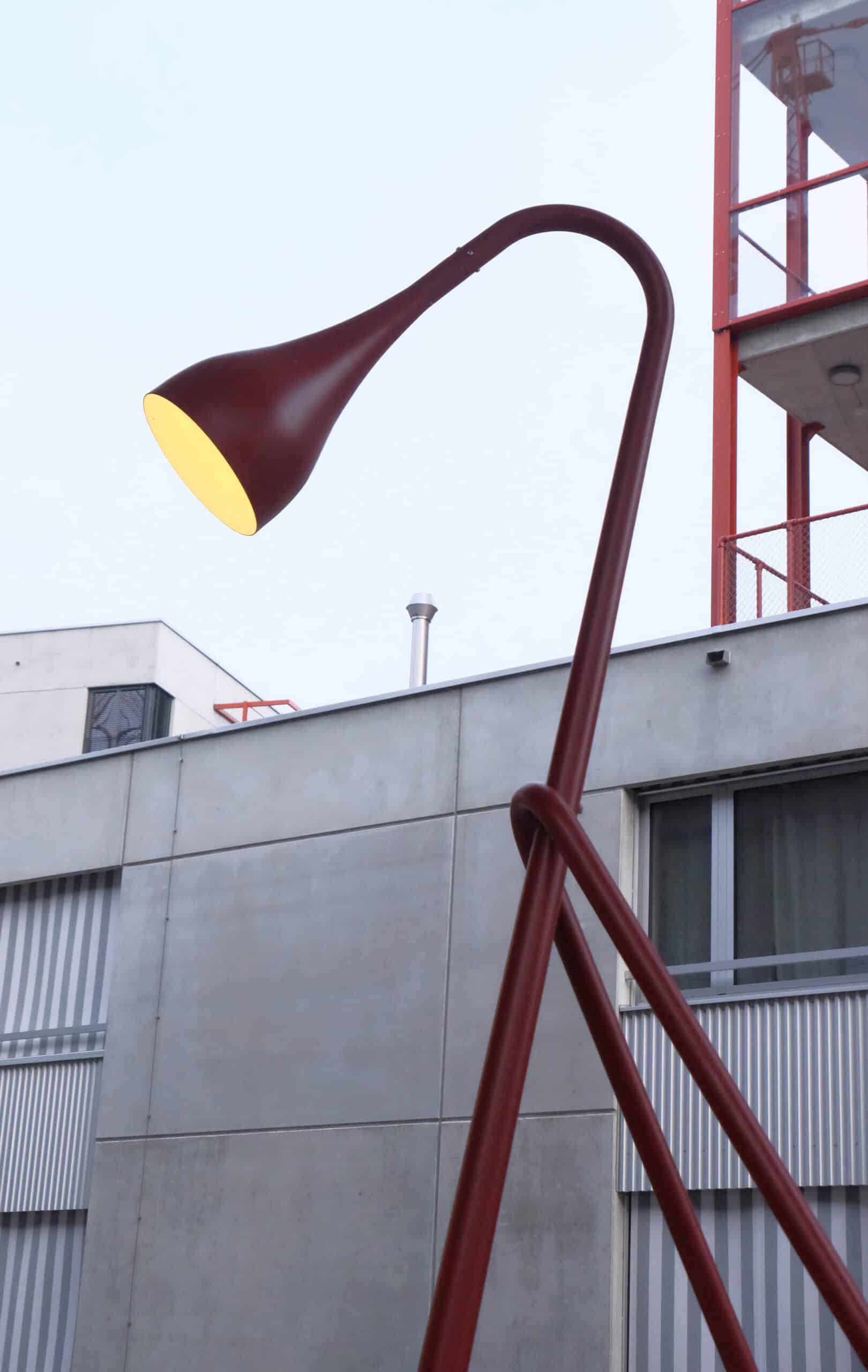 Leuchte: Mit ihrer figürlichen Dreibein-Konstruktion hebt sich die Leuchte von der funktionalen Straßenbeleuchtung ab und trägt zur wohnlichen Atmosphäre bei.