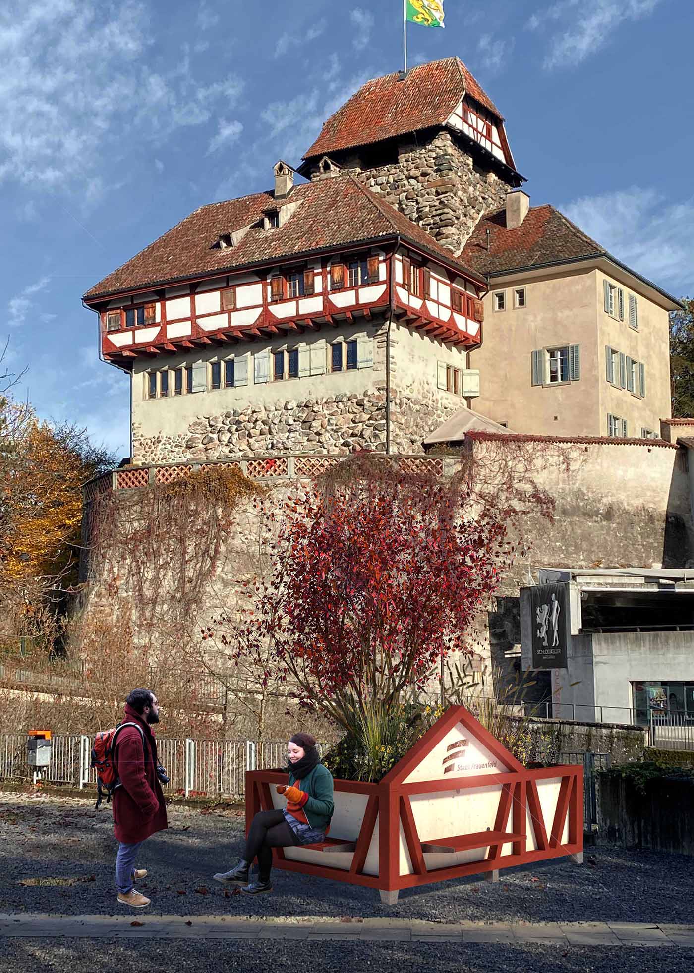 Mein Vorschlag für die Begrünung der Stadt basiert auf diesen historischen Merkmalen. Der Pflanztrog nimmt die Form eines kleinen Hauses an und schafft eine visuelle Verbindung zur Altstadt und ihren traditionellen rot-weißen Fachwerkhäusern. Die Holzkonstruktion, angelehnt an die alte Bauweise, kombiniert Vertrautheit mit Verspieltheit und bringt ein Stück Frauenfelder Identität in die öffentlichen Räume.