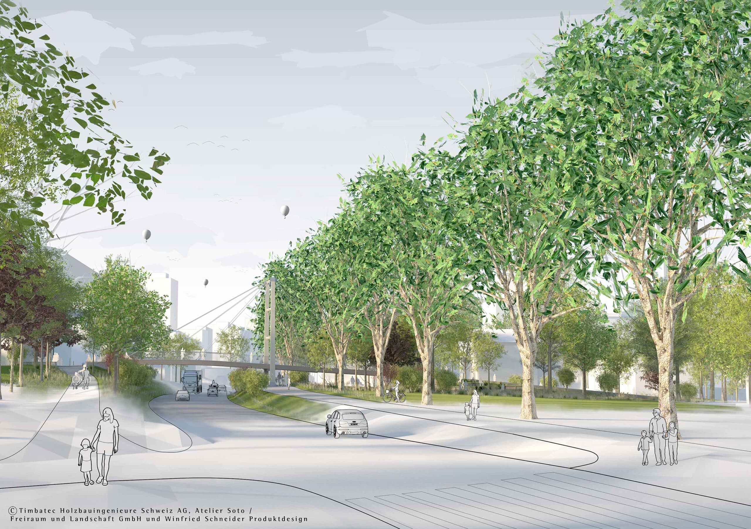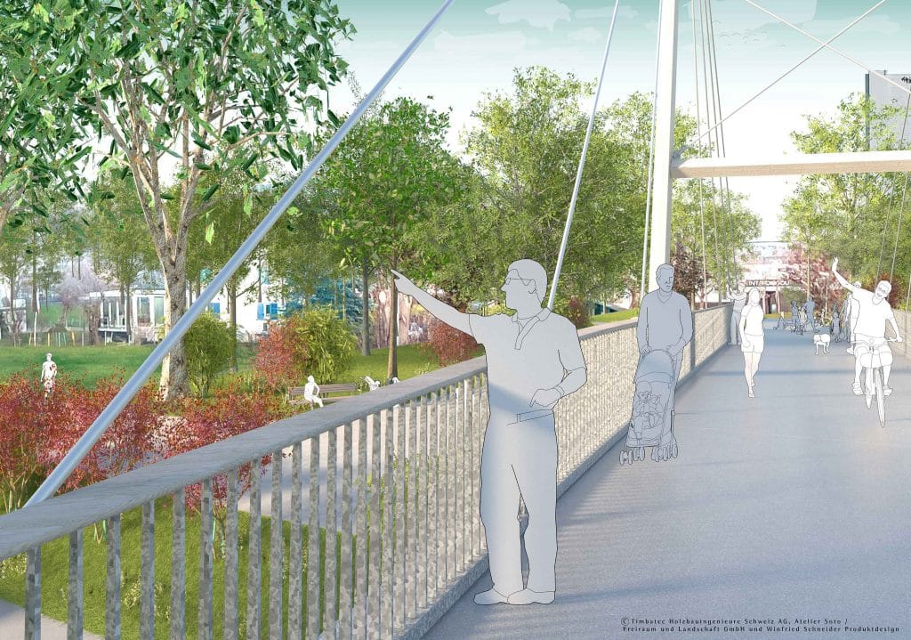 Der Steg wird zu einem Tor in das neue Zentrum, das Spreitenbachs urbane und grüne Strukturen miteinander verbindet. Mit einer klaren Linienführung, die direkt in die neue Parklandschaft führt, und einer innovativen Holzbaukonstruktion, die Nachhaltigkeit und Transparenz betont, ist der Boostocksteg ein markantes Element im Stadtgefüge.