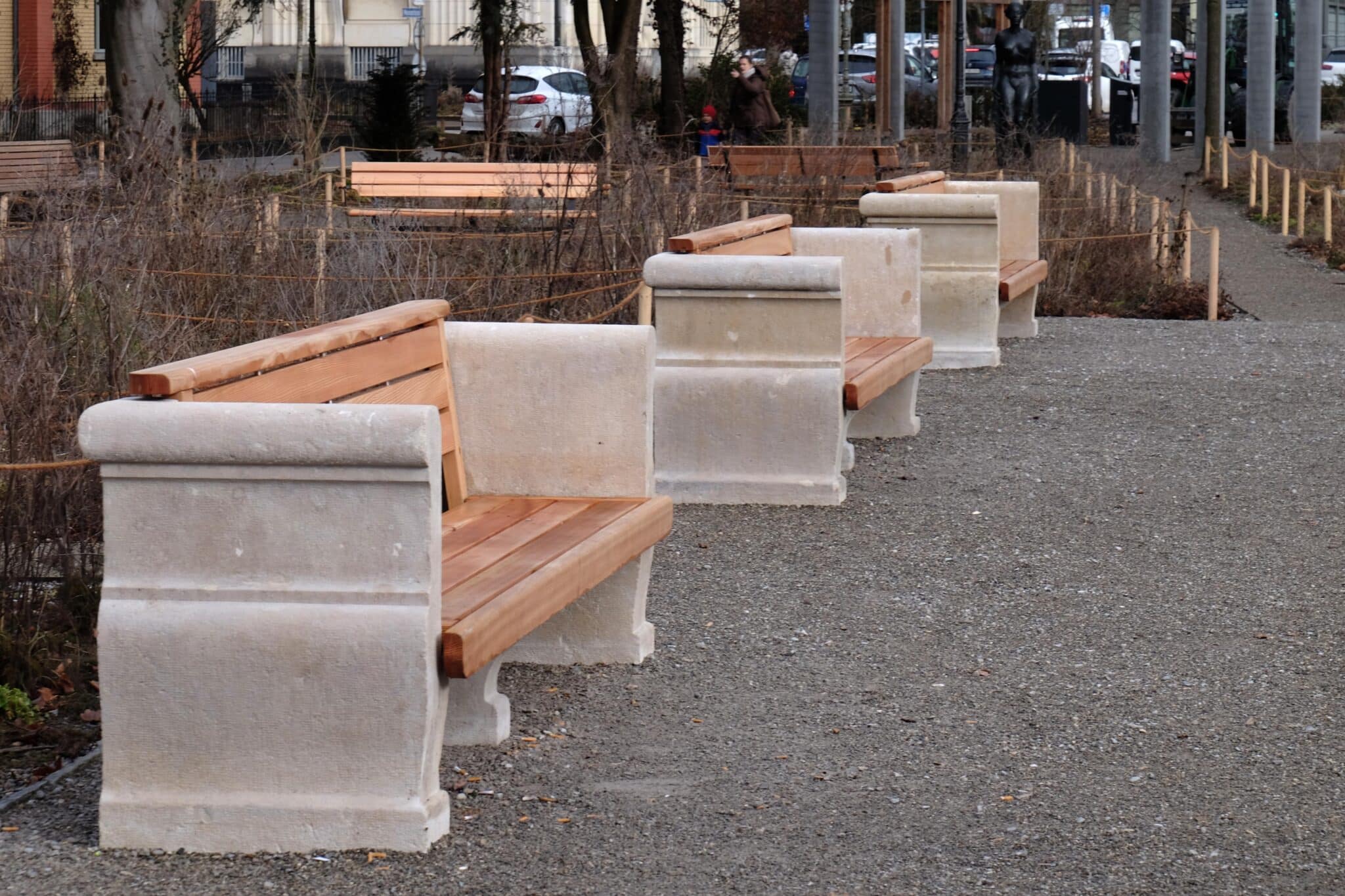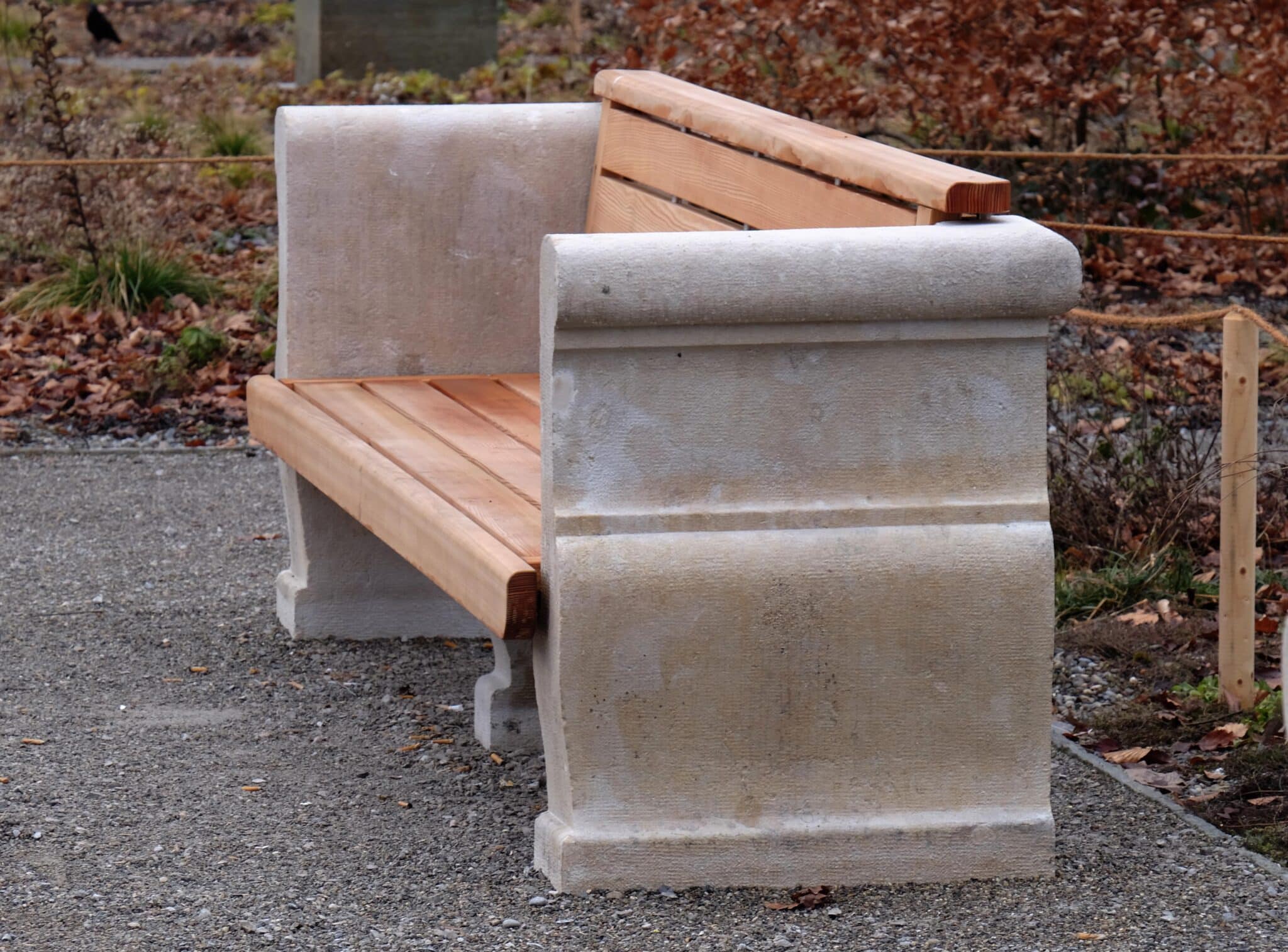 Parallel dazu wurden auch historische Steinbänke im Park instand gesetzt. Die Muschelkalk-Wangen wurden gereinigt und restauriert, während Sitz- und Rückenflächen mit einer neuen Holzkonstruktion ergänzt wurden. Die Bänke bleiben damit als Teil des historischen Ensembles im Stadtgarten erhalten.